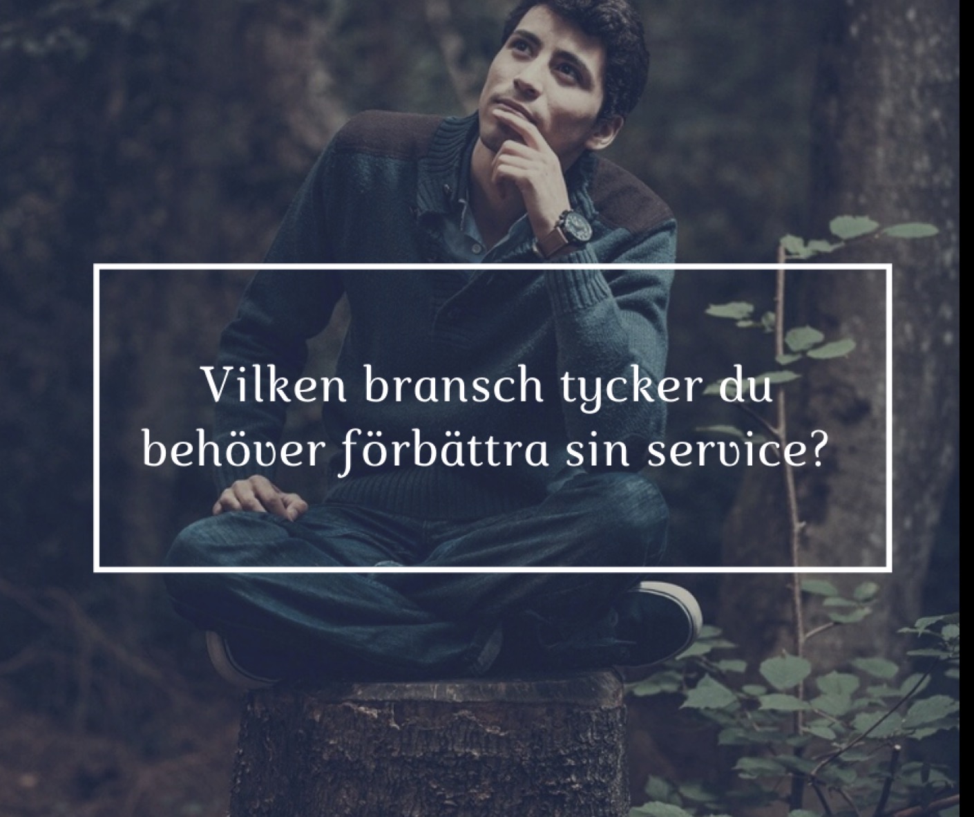 Vilka branscher/segment tycker du behöver ta på service på större allvar? Skriv i kommentarsfältet (på fb, LinkedIn) eller maila på Den här e-postadressen skyddas mot spambots. Du måste tillåta JavaScript för att se den., varför just den branschen behöver förbättra servicen. Tack på förhand!
